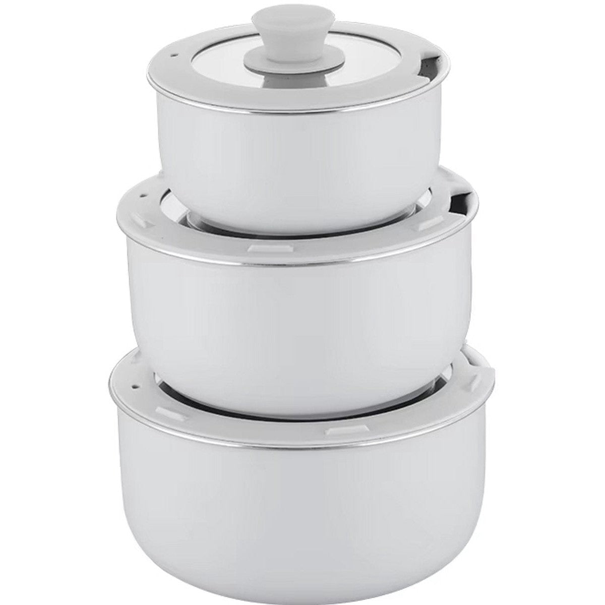 Ontdek deze stijlvolle en ruimtebesparende 15-delige pannenset in tijdloos wit. Deze set is ontworpen voor wie houdt van koken met comfort, efficiëntie en een strak design. De pannen zijn voorzien van een krasbestendige, PFOA-vrije antiaanbaklaag en hebben een modern uiterlijk dat perfect past in elke keuken.