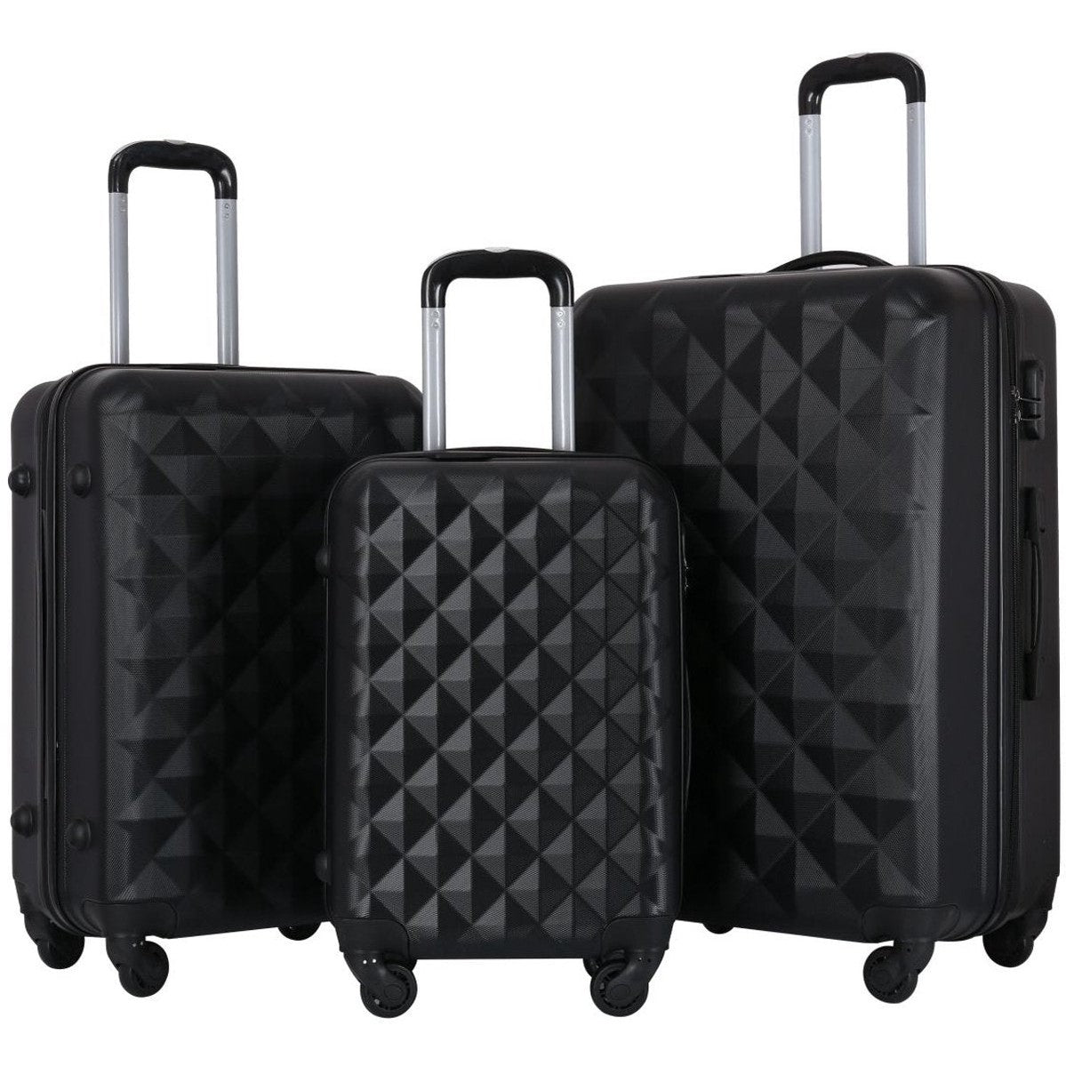 3-Delige Harde Kofferset – ABS – 360° Wielen – Dubbele wielen -zwart
