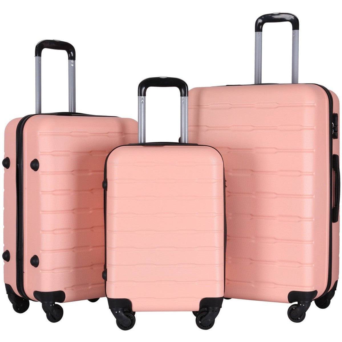 3-Delige Harde Kofferset – ABS – Lichtroze – 360° Zwenkwielen – Maat S/M/L