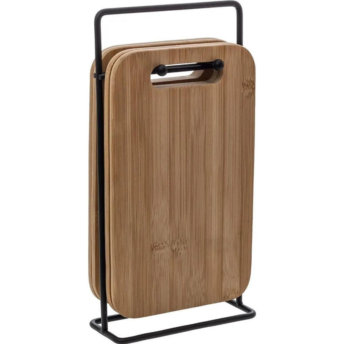5Five Broodplankjes met houder - 4x stuks - 15 x 6,5 x 26 cm - bamboe hout met metaal - Snijplankjes