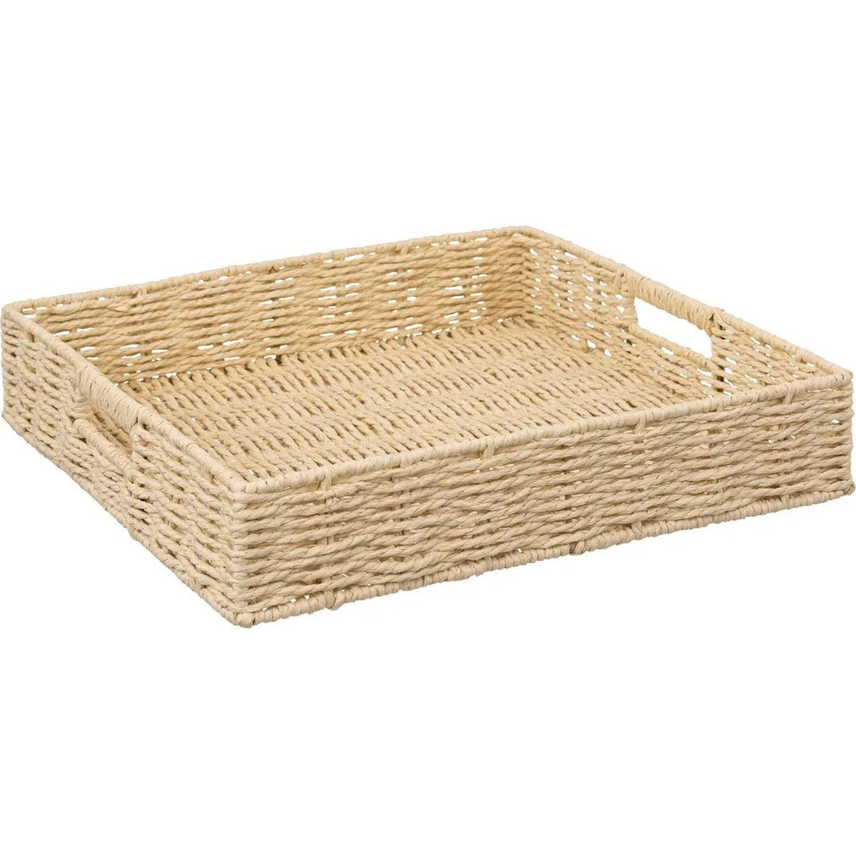 5Five Dienblad/serveer plateau - 35 x 35 cm - gevlochten koord - Naturel look - Metalen frame
