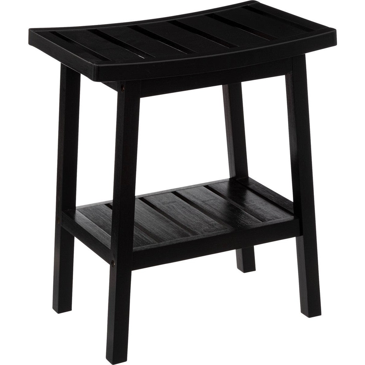 Bijzet krukje of Douchekrukje van 46 cm hoog. Dit handige krukje is gemaakt van bamboe hout en heeft een formaat van ongeveer L40 x B25 x H46 cm. Handig bijzet krukje om o.a. in de badkamer te plaatsen. Kleur: zwart. Maximale belasting: 120 kilo.