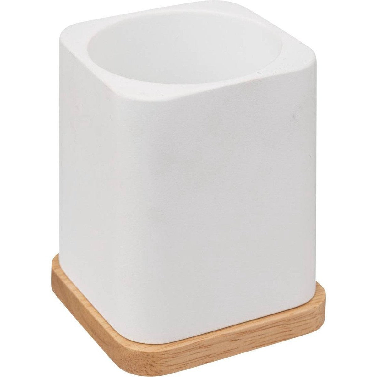 Toiletborstel/WC-borstel met houder in de kleur wit met bamboe detail. Dit luxe badkamer accessoire is deel van de Natureo collectie. Formaat: ca. H35,5 x D9,1 cm. Kleur: wit/lichtbruin. Materiaal: bamboe (hout), staal, kunststeen (polyresin). Serie: Natureo. Merk: 5Five.