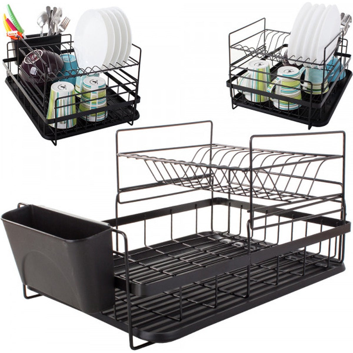 Afdruiprek - afdruiprek met lekbak - afdruiprek zwart - afdruiprek voor afwas - afdruiprek metaal - 2 niveau's