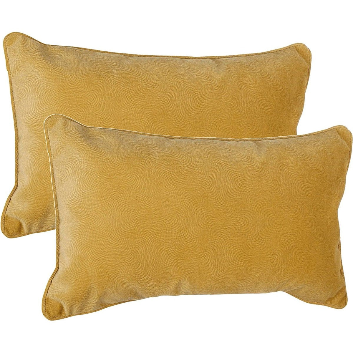 Set van 2 bankkussens/sierkussens voor o.a. in de huiskamer op stoelen en banken. Serienaam: Sophia. Afmetingen: 30 x 50 x 10 cm. Kleur: Okergeel. Deze kussen zijn gemaakt van polyester en hebben een rits zodat u de hoes kan wassen op maximaal 30 graden. Niet strijken. Combineer verschillende uni kleuren en formaten kussens uit deze serie op uw bank voor meer sfeer.
