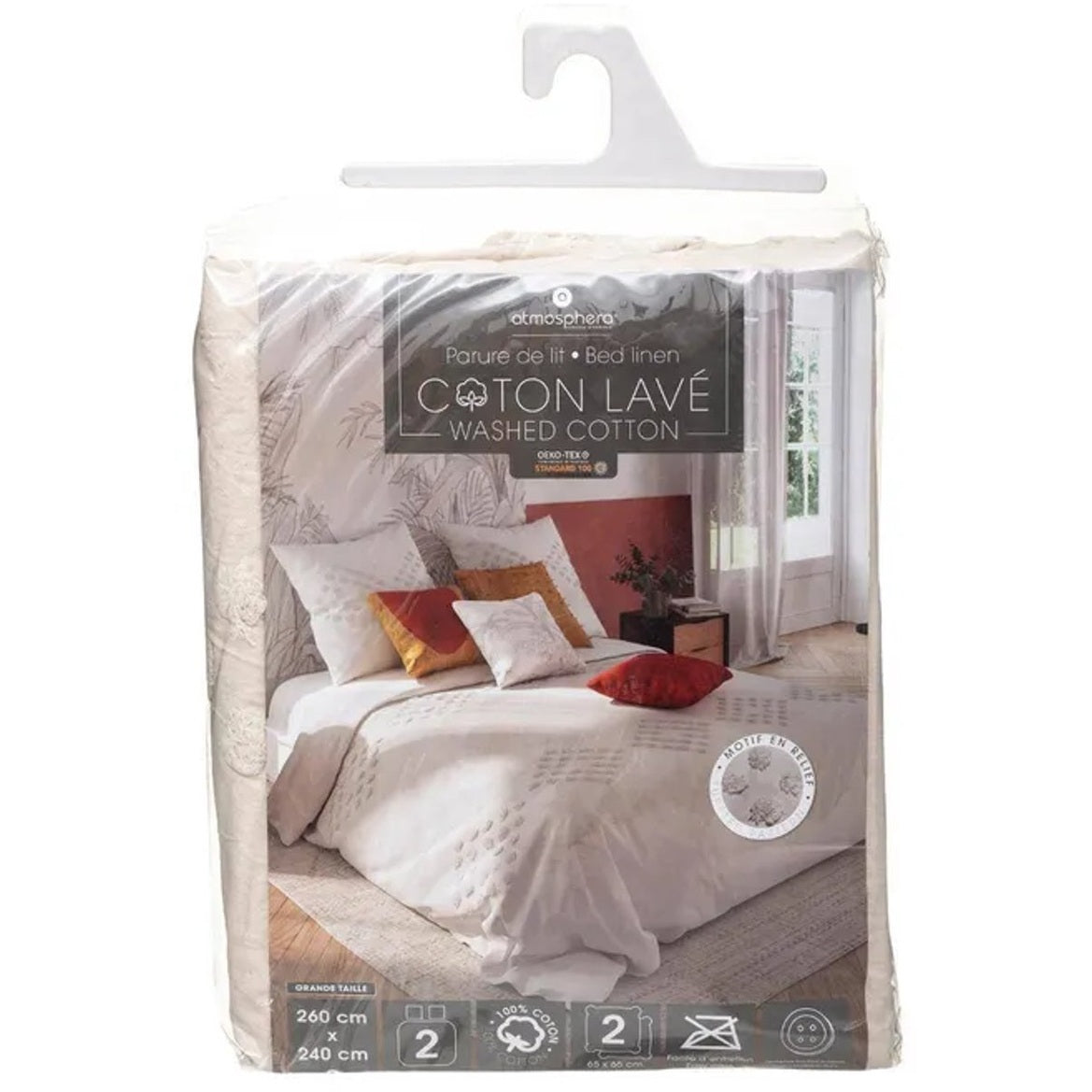 ATMOSPHERA beddengoedset voor 2 personen 260 x 240 cm dekbedovertrek met 2 kussenslopen in ivoor en getuft gewassen katoen