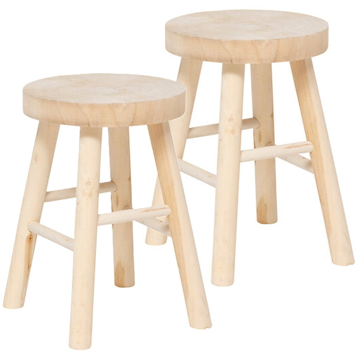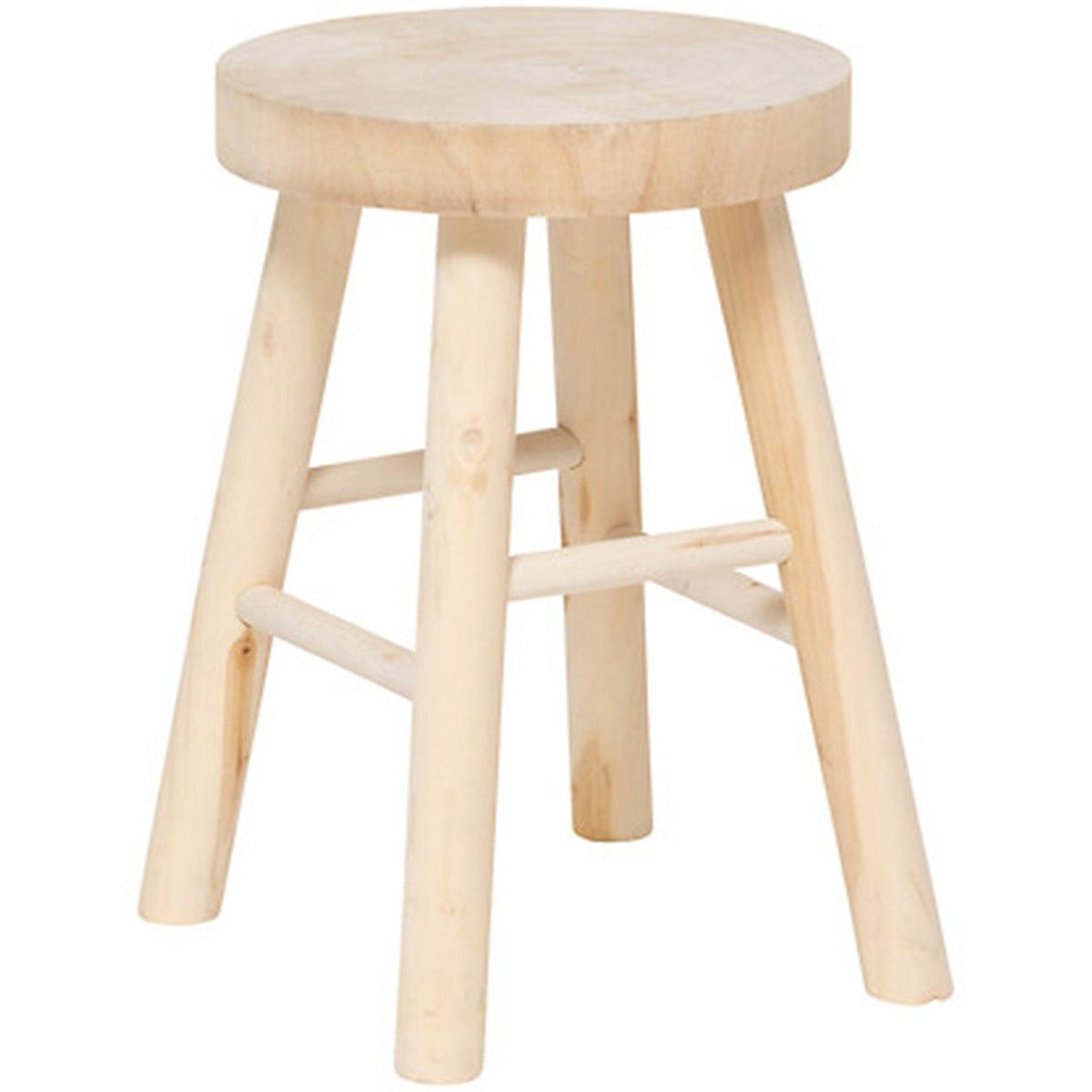 Atmosphera Bijzet krukje model Woody - 2x - lichtbruin - pauwlowna hout - D28 x H41 cm - bijzettafeltje