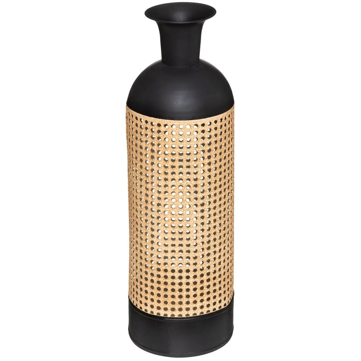 Atmosphera Bloemenvaas Oriental - zwart/beige - gietijzer - D18 x H60 cm - flessenhals vaas