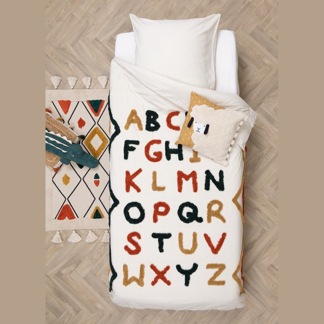 Een hele toffe dekbedovertrek met het alfabet in getuft katoen.