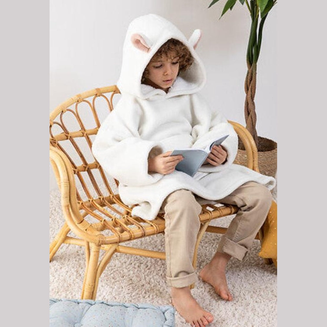 Houdt je warm. Je kind zal het niet alleen warm hebben, maar zich ook in een cocon wanen met deze zachte flanellen capuchontrui, gevoerd met fleece voor extra comfort. Deze deken-trui heeft een grote kangoeroezak en lange mouwen met manchetten en is verkrijgbaar in één maat.