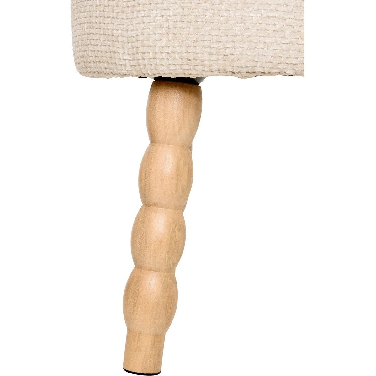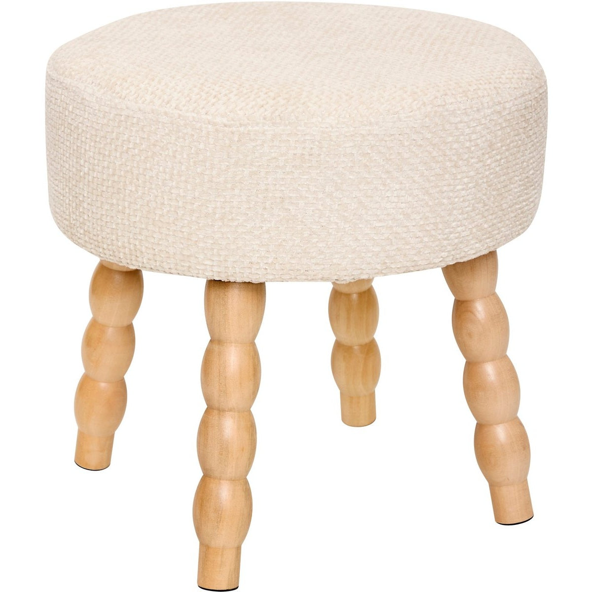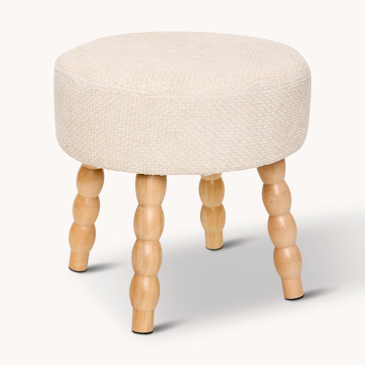Deze speelse poef combineert comfort en karakter in één stijlvol ontwerp. De zachte zitting en speelse houten pootjes zorgen voor een charmante look die in elk interieur tot zijn recht komt. Ideaal als extra zitplek of decoratief accent in de kinderkamer of woonkamer.