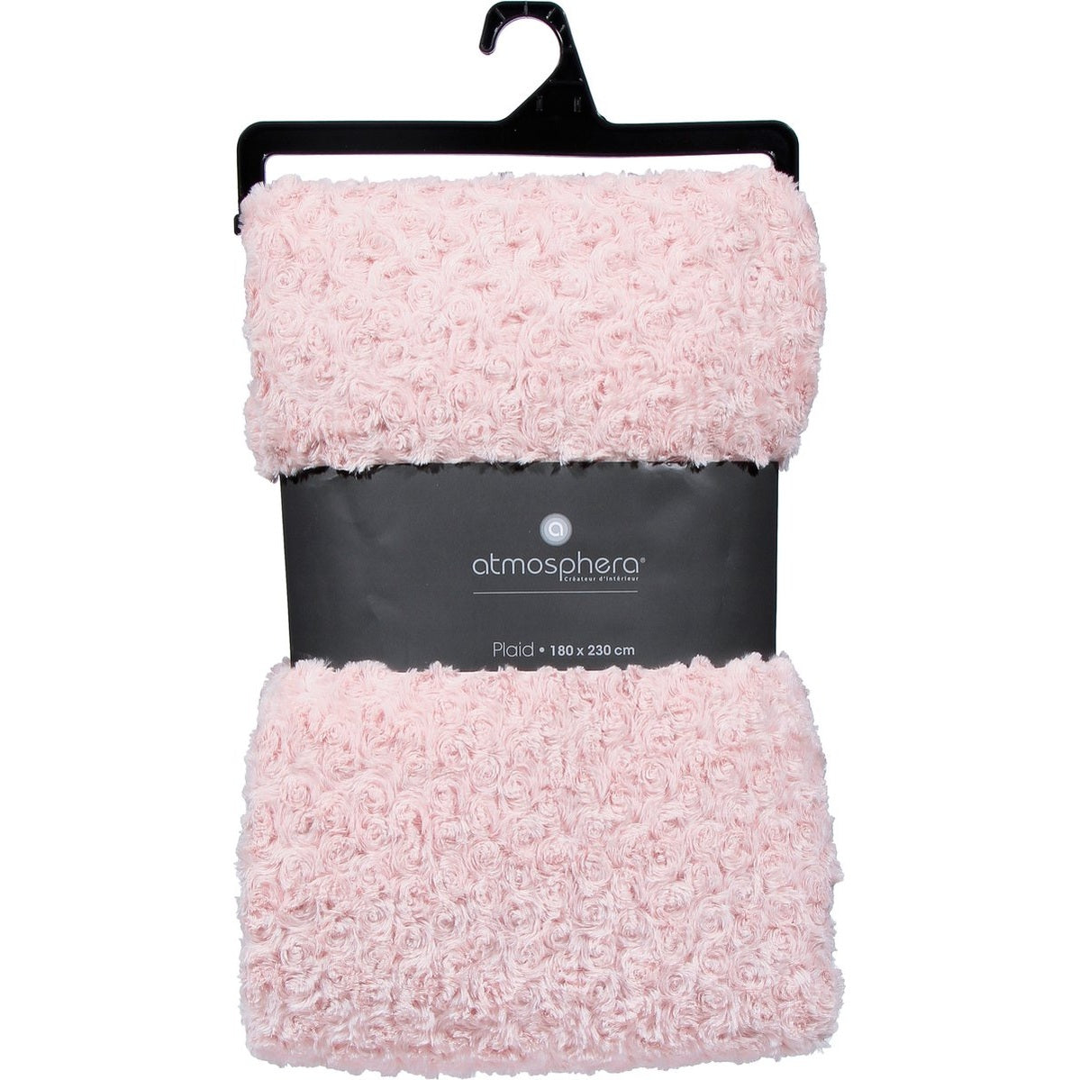 Atmosphera Sprei/deken/plaid - lichtroze - polyester - 230 x 180 cm - geknoopt motief