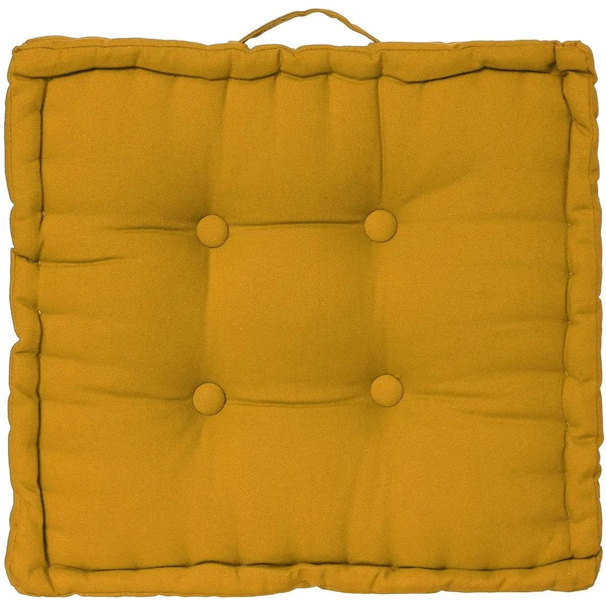 Atmosphera Vloerkussen Square - okergeel - katoen - 40 x 40 x 8 cm - vierkant - Extra dik