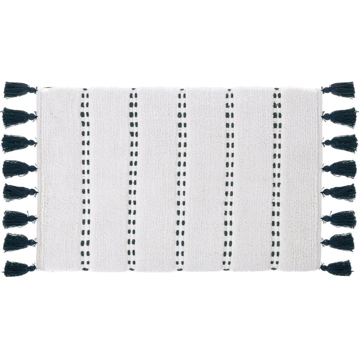 Badmat - Katoen - Wit + Donkergroen - 50 x 75 cm