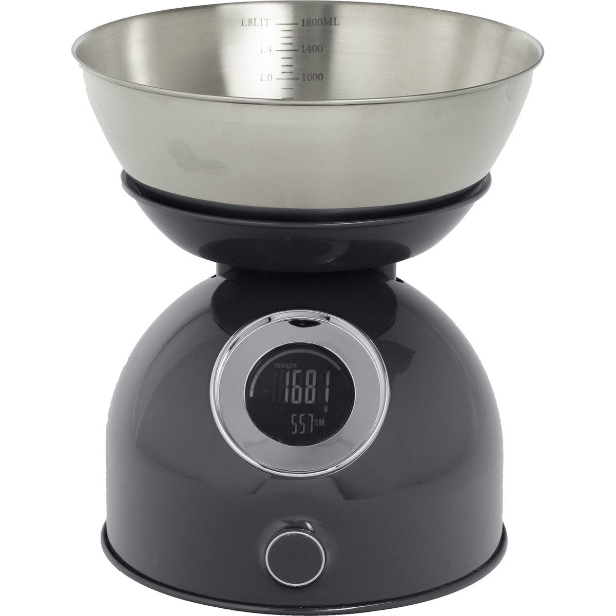 Digitale keukenweegschaal met kom grijs metaal - dia20 x H27 cm - Elektrisch
