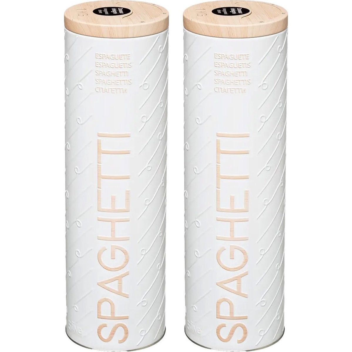 Five Spaghettidoos - 2x - wit - metaal - relief - Luxe voorraadpot/voorraadbus