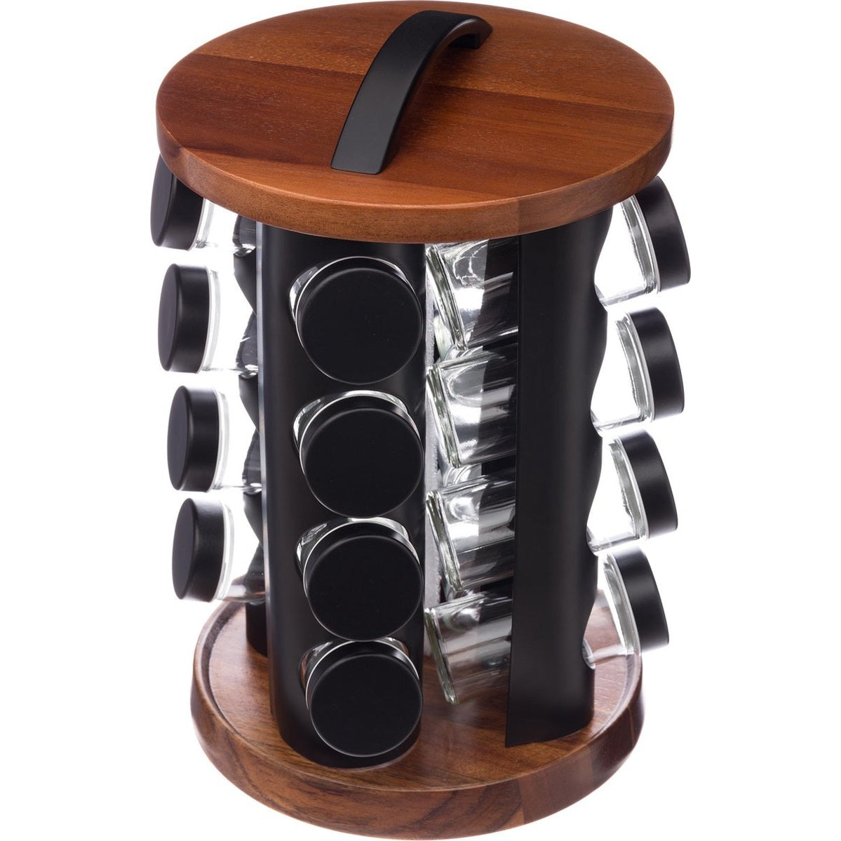 Kruidenrekje carrousel met 16 kruidenpotjes 31,5 cm van acacia hout. Een complete set met 16 kruiden potjes en een draaibare houder. Elk potje is transparant zodat u goed kunt zien wat er in zit en de dop heeft 6 gaten om de kruiden goed te doseren, met drukdop. Afmeting: ca. D20 x H31,5 cm. Afmeting potjes ca. 9,5 x 6 cm. Reinigen: hand afwas en goed nadrogen. Materiaal: acacia hout/kunststof/glas.
