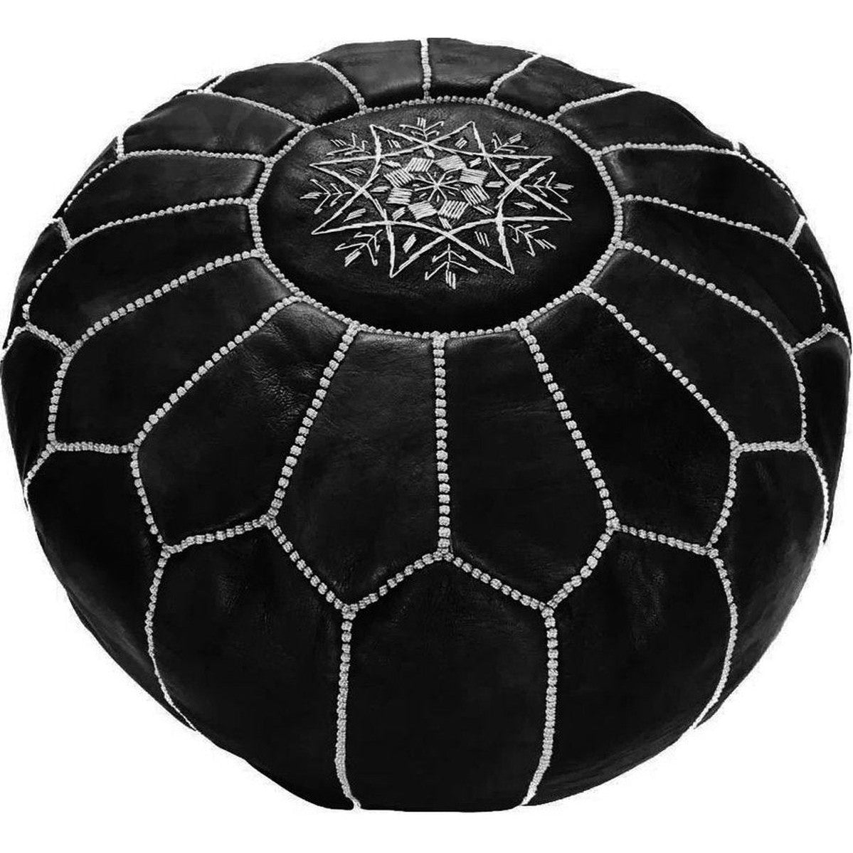 Handgemaakte Marokkaanse Leren Poef - zwart
