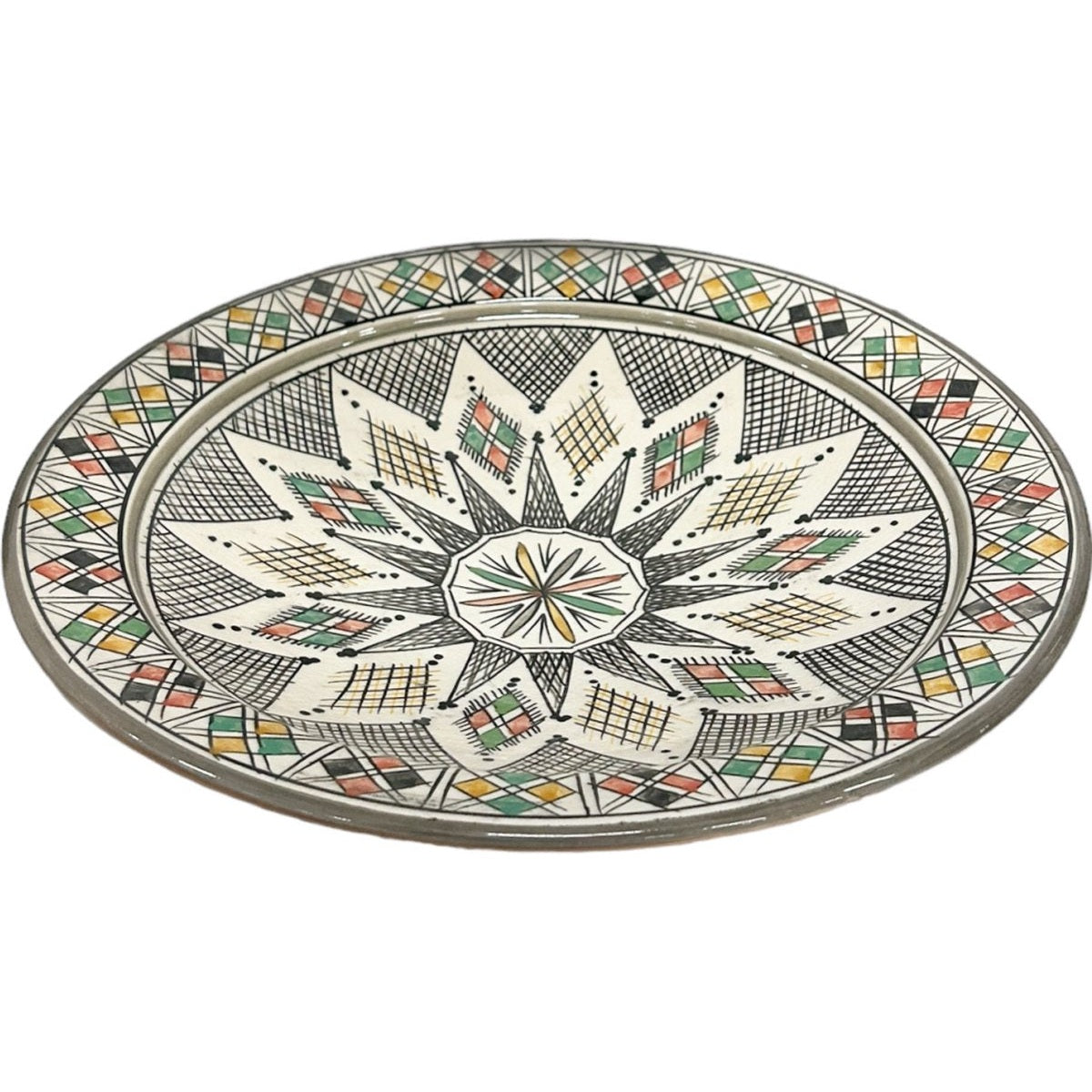 Authentieke handgemaakte en handbeschilderde Marokkaanse aardewerk schaal beschilderd in de kleuren grijs op wit. Op veel verschillende manieren te gebruiken. Bijvoorbeeld decoratief, als fruitschaal, of saladeschaal.