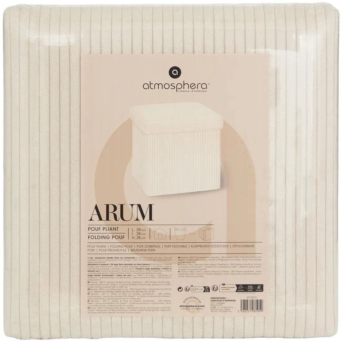 Atmosphera hocker poef Essestial Ribcord. Slim, stijlvol en opvouwbaar: deze hocker uit de Essestial Ribcord serie is dé ideale combinatie van comfort en functionaliteit. Hij biedt een royale opbergruimte voor spullen die je liever uit het zicht houdt én is in een handomdraai op te vouwen wanneer je ‘m even niet nodig hebt. De zachte polyester bekleding en strakke vormgeving maken hem tot een subtiele blikvanger in elk interieur. Perfect voor kleine woningen, studentenkamers of als extra opberger in de hal of slaapkamer. Afmeting: ca. 38 x 38 cm. Materiaal: MDF en polyester. Zitplaats met opbergruimte.