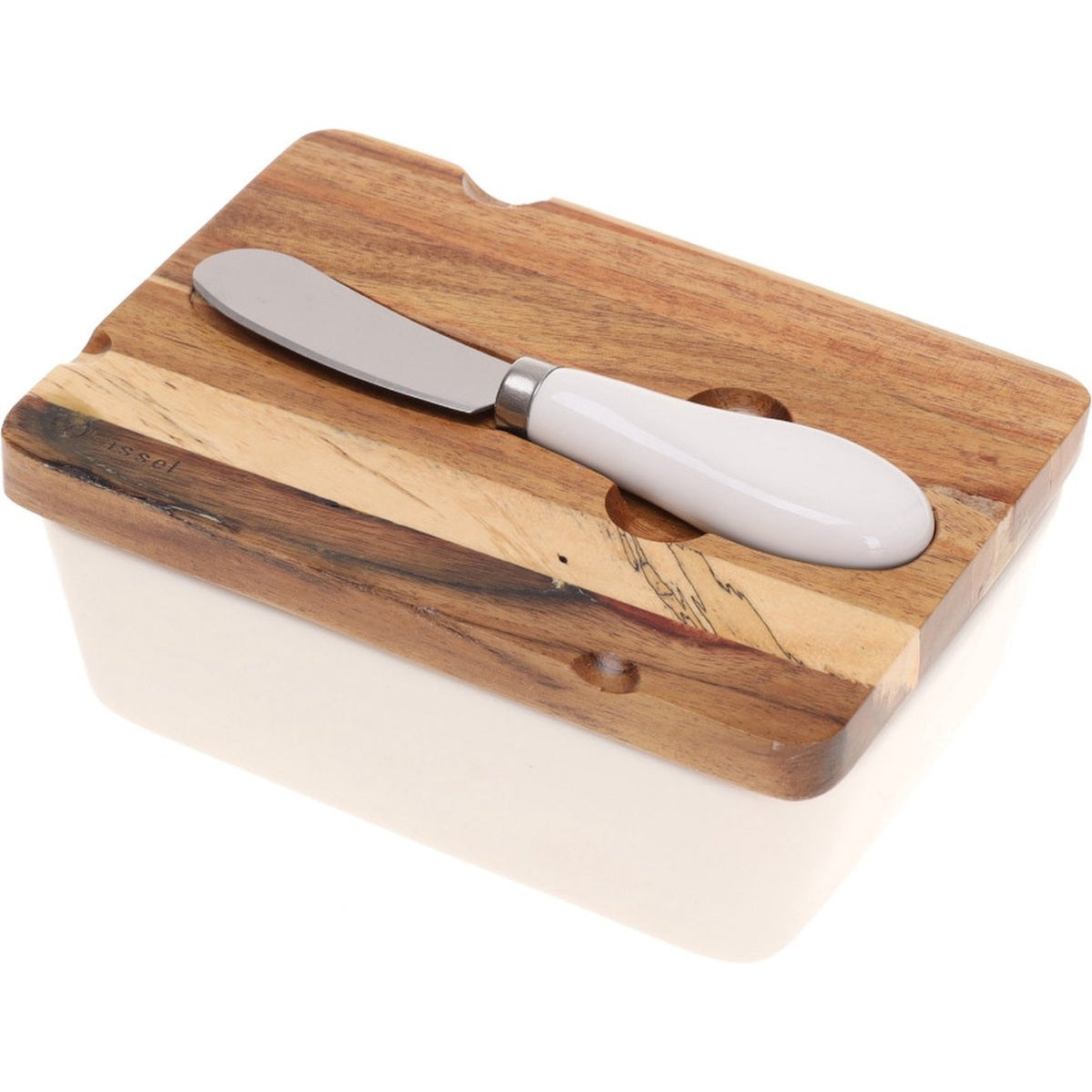 - Acacia houten deksel: 15,5 x 10,5 x 1,8 cm