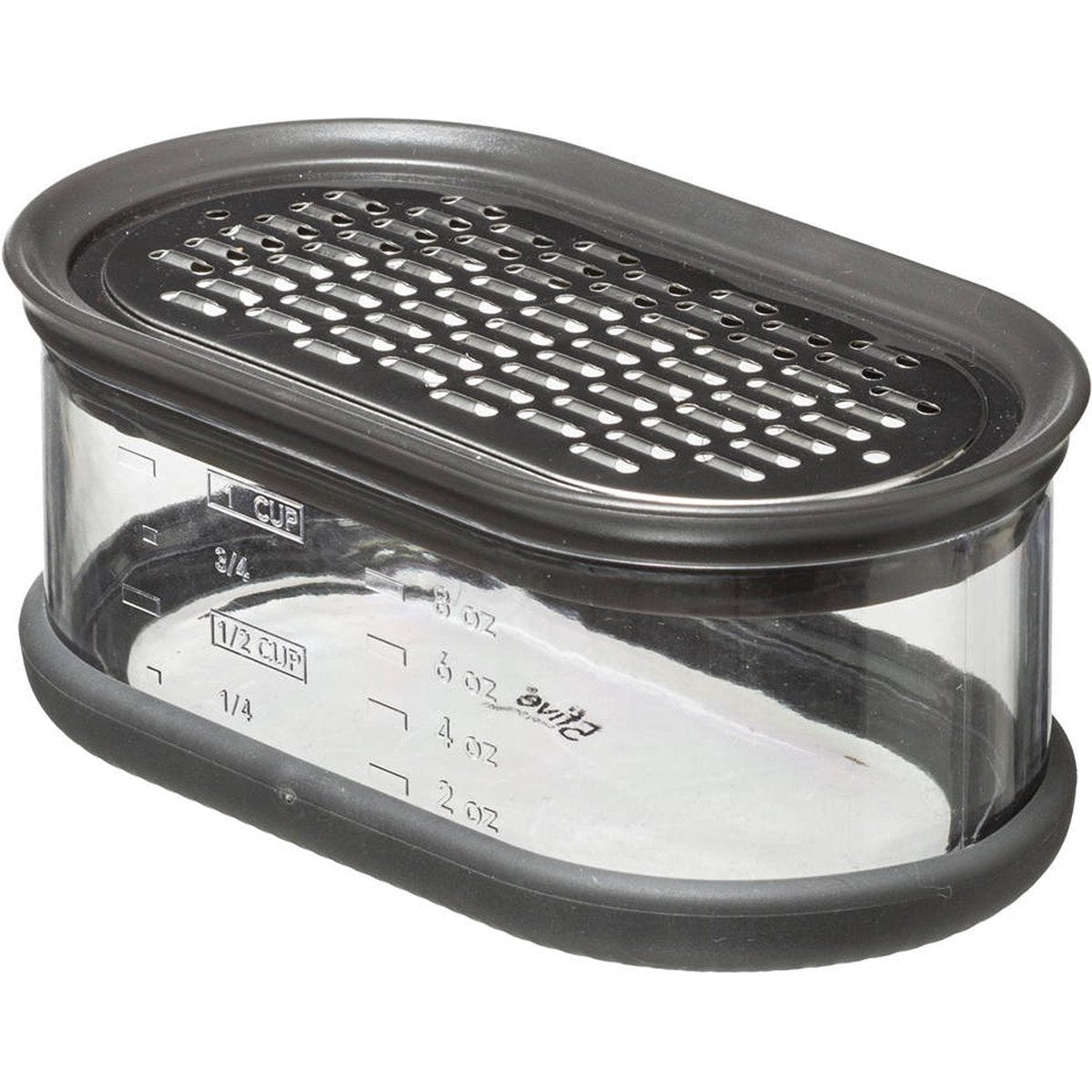 Met een transparant bakje kun je gemakkelijk inschatten hoeveel halffabricaten je al hebt geraspt.