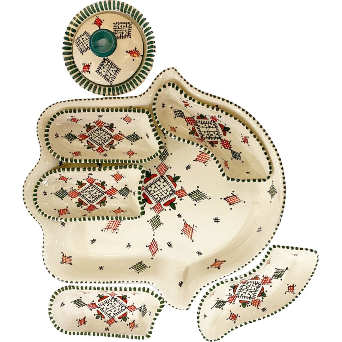 Khamsa 7-delige Tafelen dipping en serveerset - aardewerk en handgemaakt - Origineel Cadeau