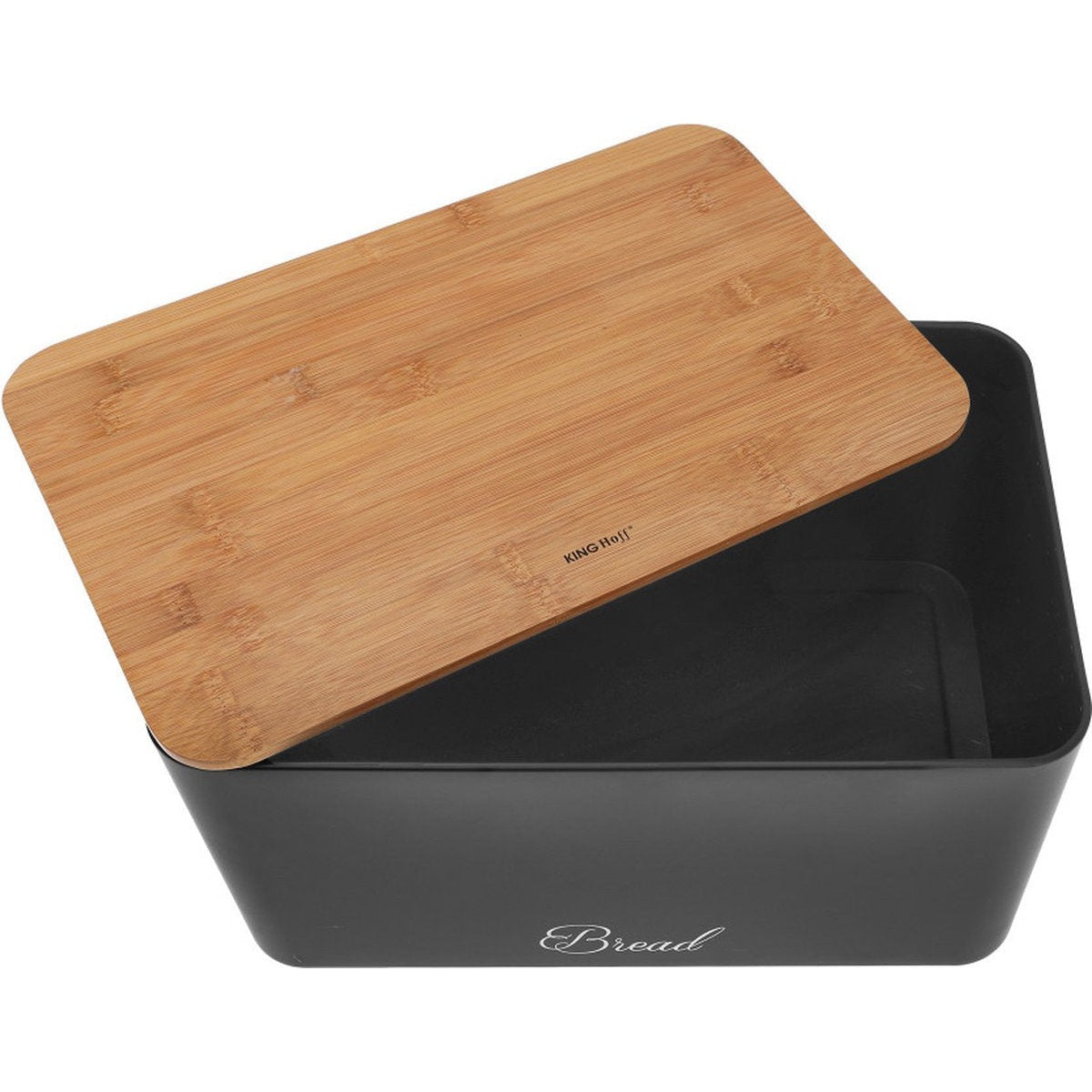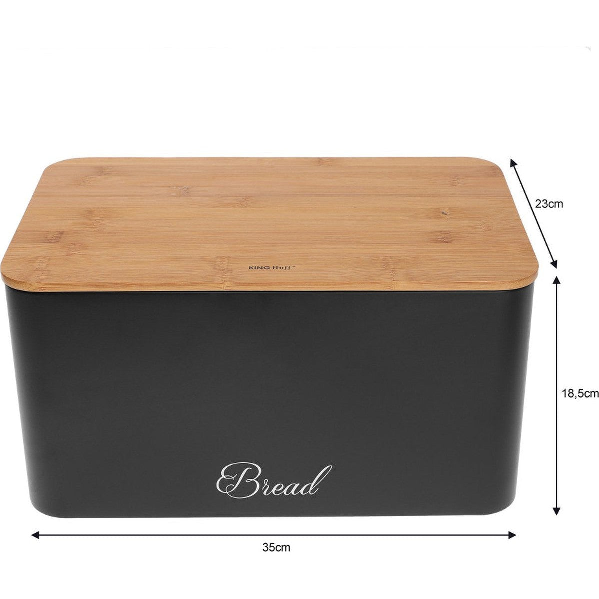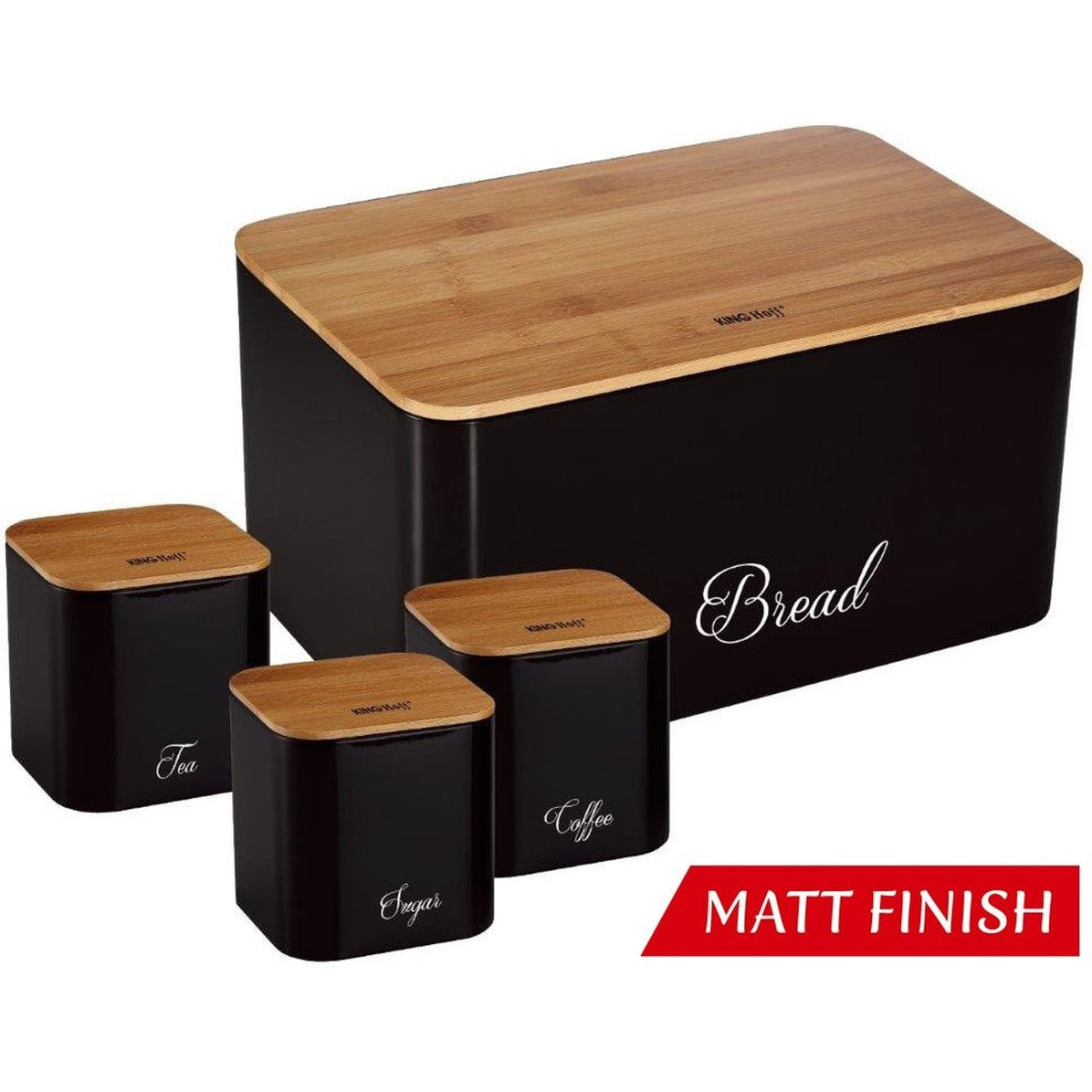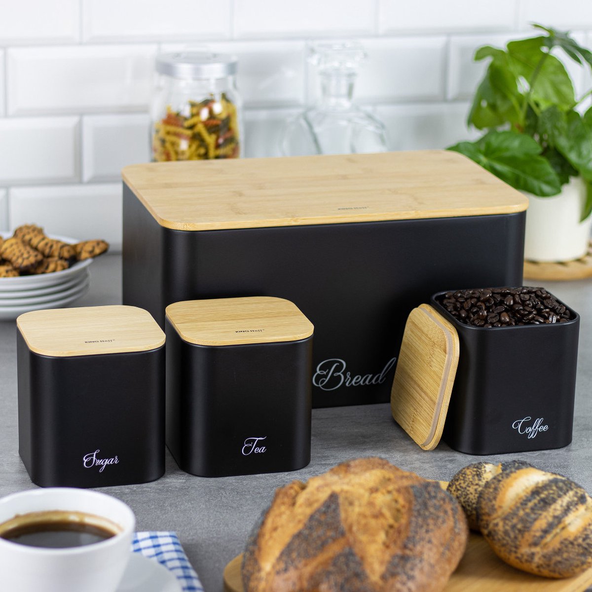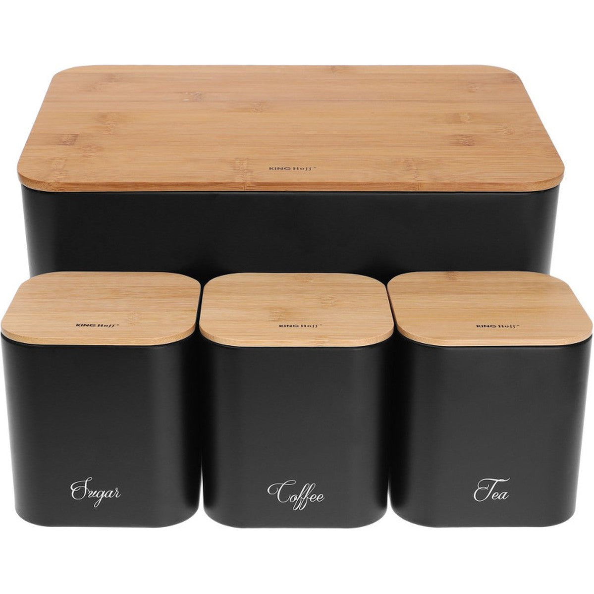 Kinghoff 1586 - Broodtrommel met voorraadbussen - Staal / bamboe - zwart