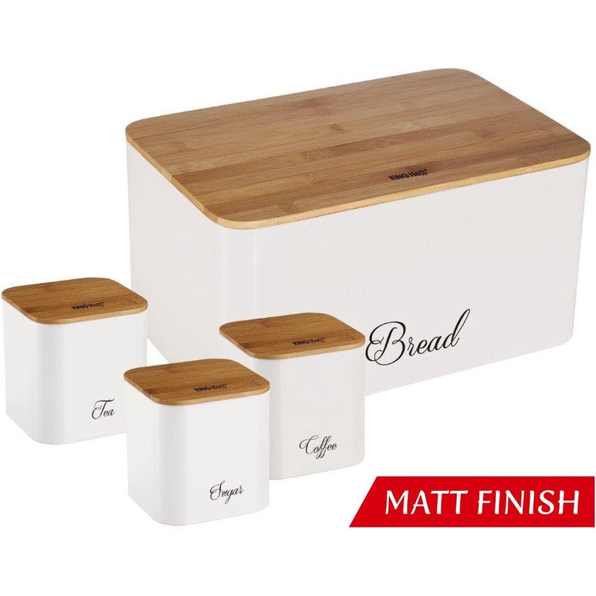 Kinghoff 1587 - Broodtrommel met voorraadbussen - Staal / bamboe