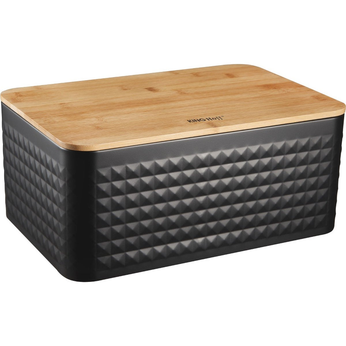 Kinghoff 1713 - Stalen broodtrommel met bamboe deksel - zwart