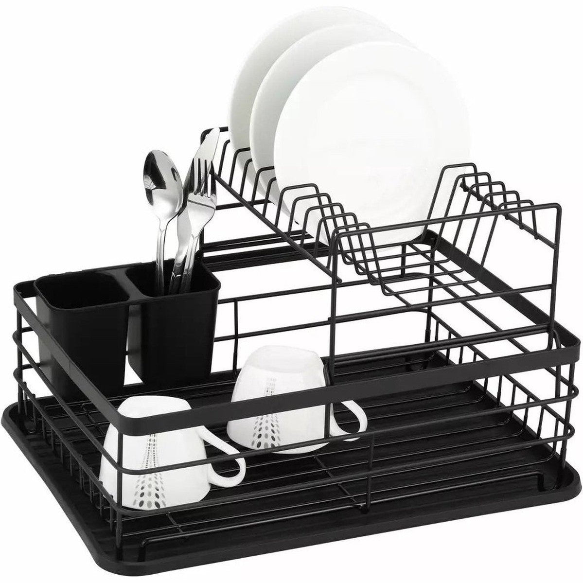 Kinghoff 1716 - Luxe Afdruiprek met bestekkorf en lekbak - Droogrek - Afdruiprek - 43 x 29 x 27 cm