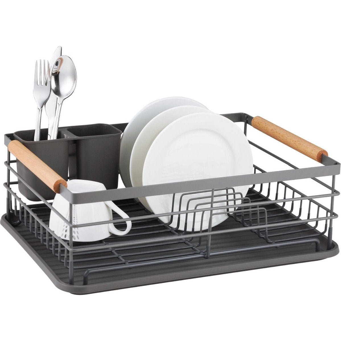 - Het afdruiprek heeft aan beide zijden handige houten draaggrepen waaraan een keukendoek kan worden opgehangen.