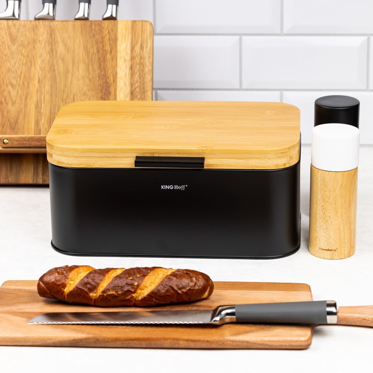 Kinghoff 1735 - Broodtrommel - Bamboe - zwart - 8.4 liter
