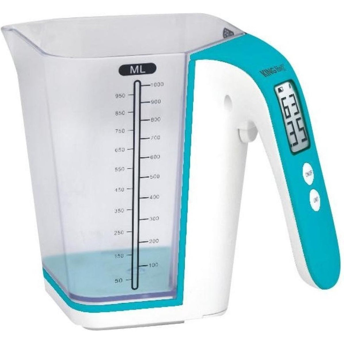 KINGHOFF | digitale precisie weegschaal - met maatbeker - Geschikt voor bakken koken en miken - blauw
