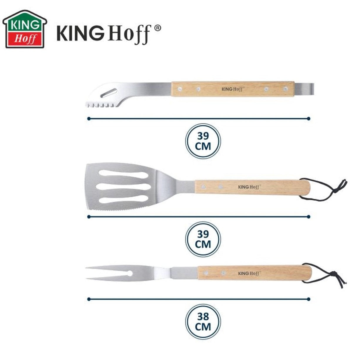Kinghoff KH-1918 Barbecue Set 3-delig – RVS Grillset met Houten Handvatten – Tang, Spatel en Vork - Uiteraard ook geschikt voor Gasbarbecues , Kamado , Green egg en Weber.