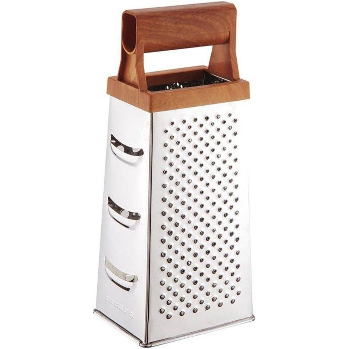 Uiterst scherpe rasp met vier wrijfvlakken. De kleine gaatjes zijn vooral geschikt voor harde kaassoorten en voor het raspen van komkommer, wortel, kool, citrus, gember etc.