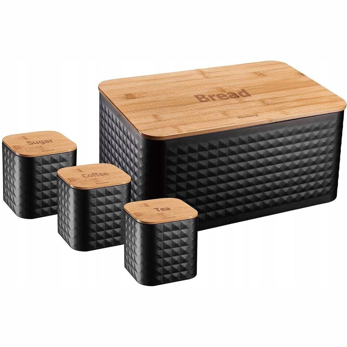 Klausberg 7482 - Broodtrommel met suiker, koffie en thee bus - zwart