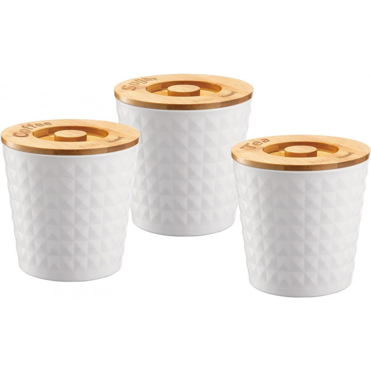 Klausberg 7487 - voorraadbussen - staal / bamboe - wit - set van 3