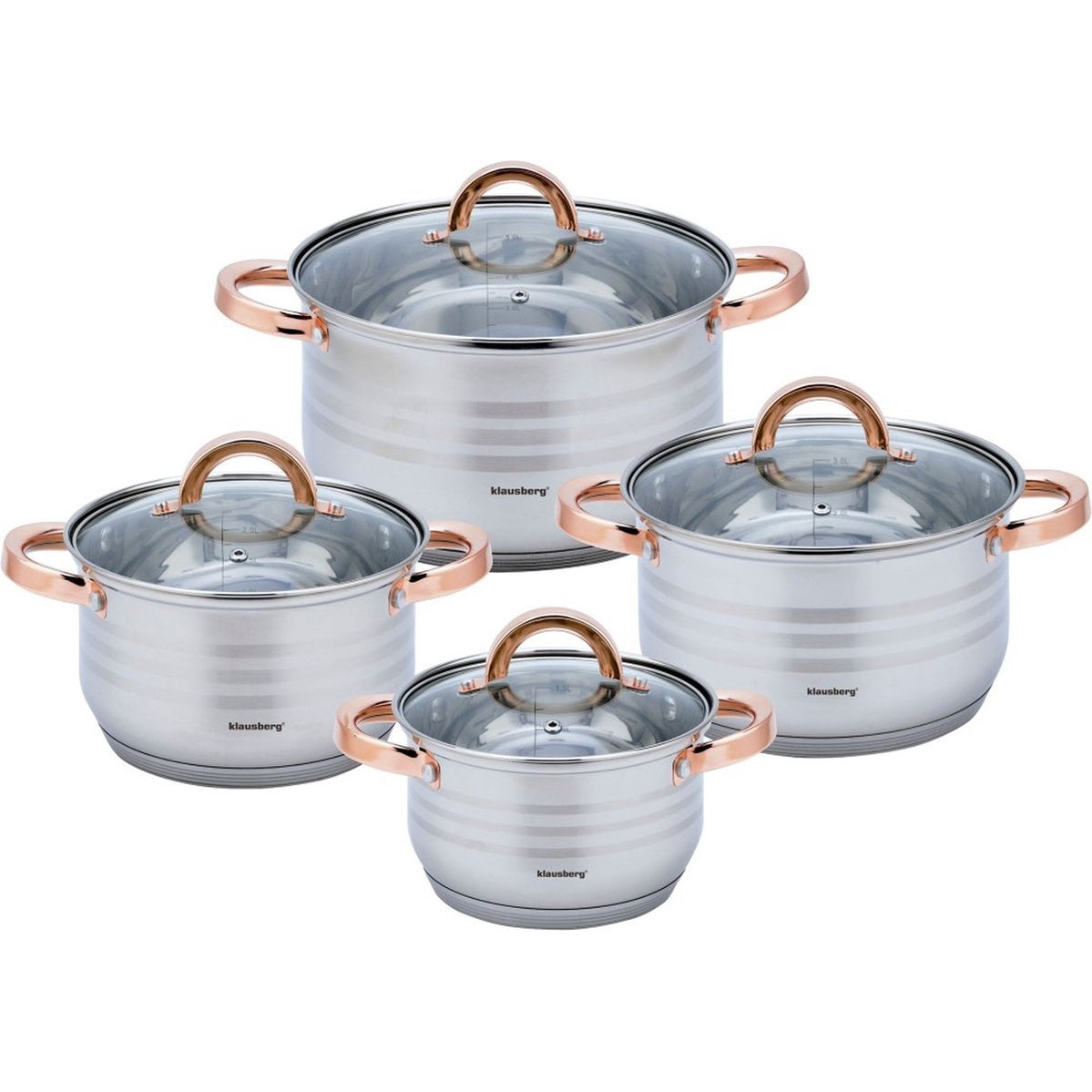 Klausberg 7699 - 8 delige pannenset - kookpannen - 16-18-20-24 cm - met deksel - golden rose