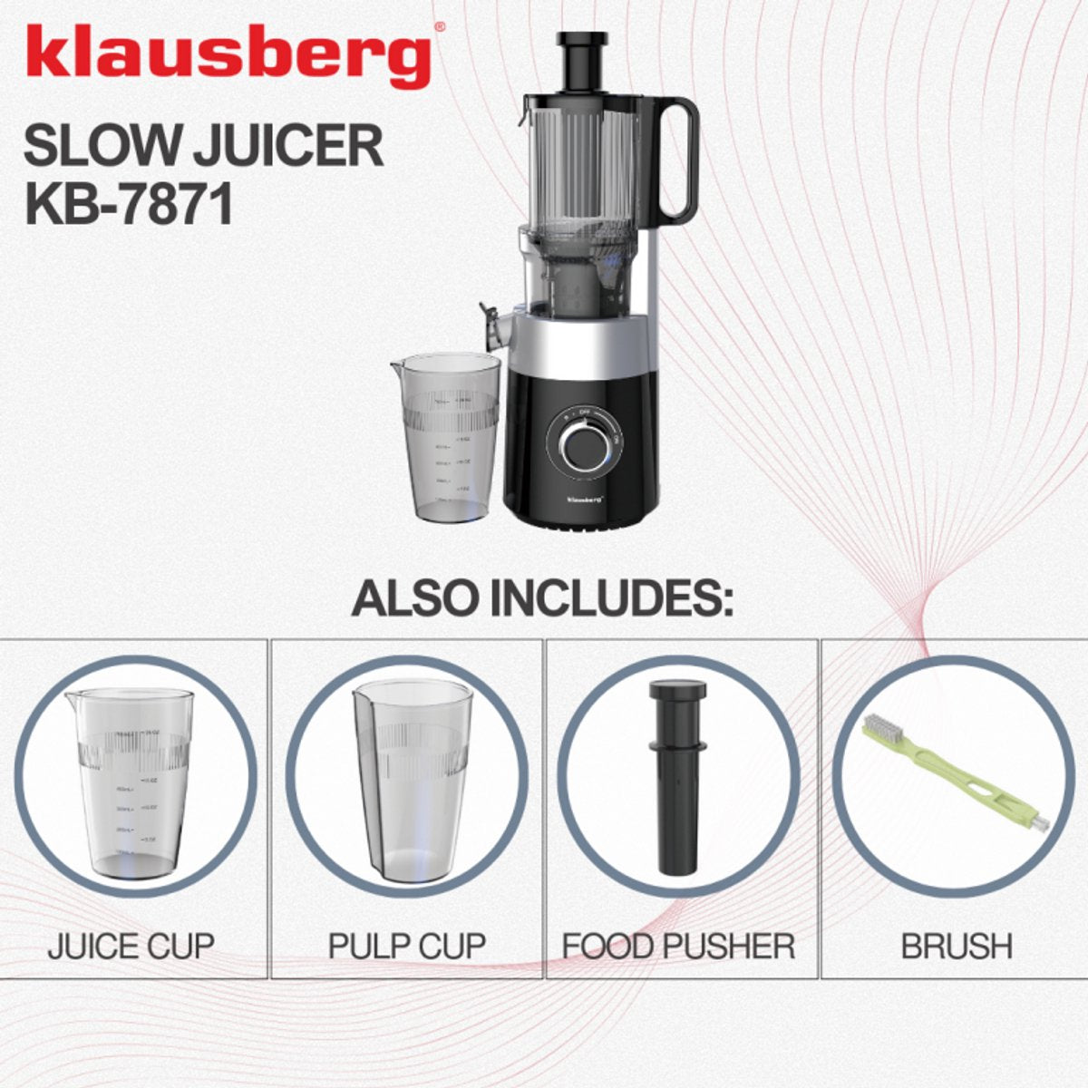 Kies voor de KB-7871 van Klausberg – de betrouwbare slowjuicer die jouw gezondheid, gemak en keukenstijl perfect combineert.