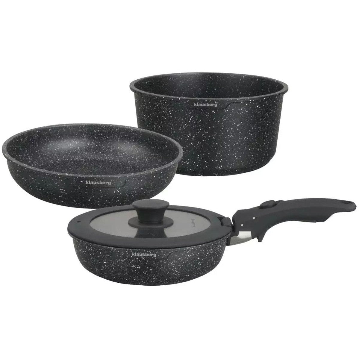 KLAUSBERG - Moderne 5-delige Kookset pannenset met Marmeren Anti-aanbaklaag en Afneembare Handgreep - Geschikt voor Alle Warmtebronnen, Inclusief Inductie