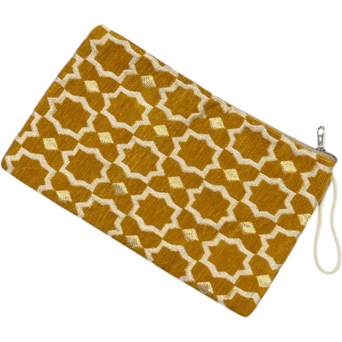 Luxe Handgemaakte Make-uptas met Zellig Motief - Marokkaanse Etui voor Reizen en Dagelijks Gebruik - Okergeel
