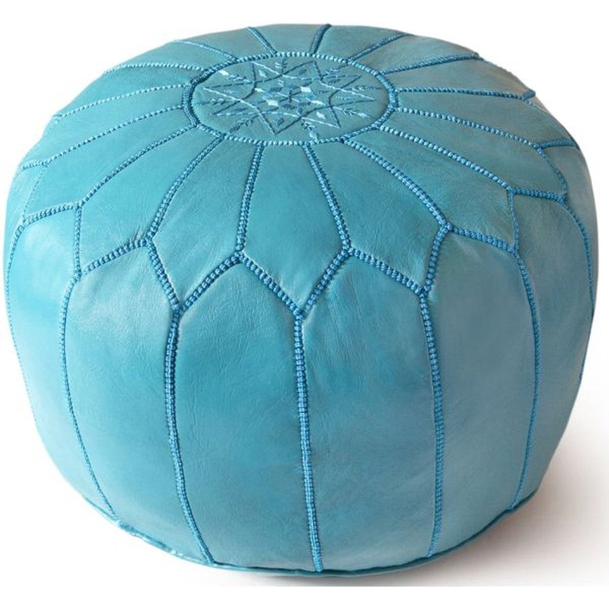 | Marokkaanse Lederen Poef | Lichtblauw | Handgemaakt | 50 Ø | Gevuld geleverd |