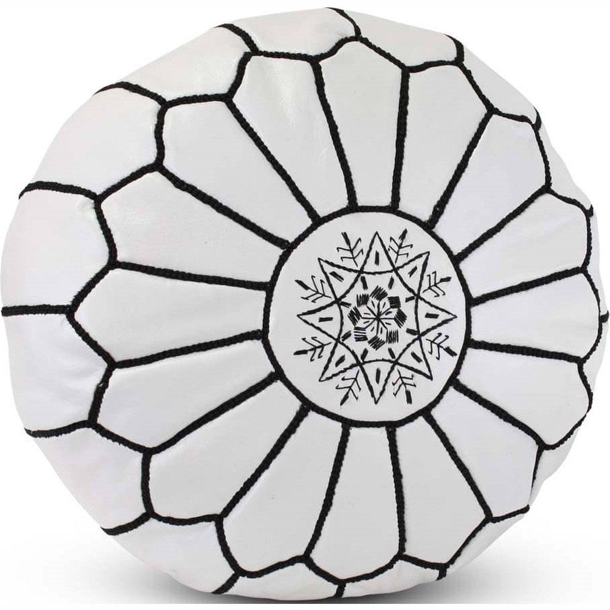 Marokkaanse leer poef wit met zwart