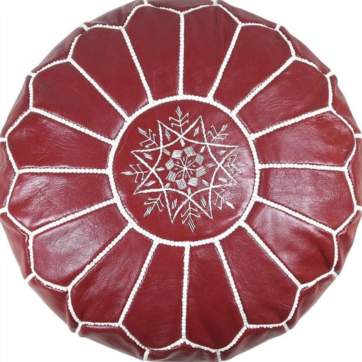 Marokkaanse Leren Poef - Handgemaakt en hoge kwaliteit - Burgundy - Gevuld Geleverd