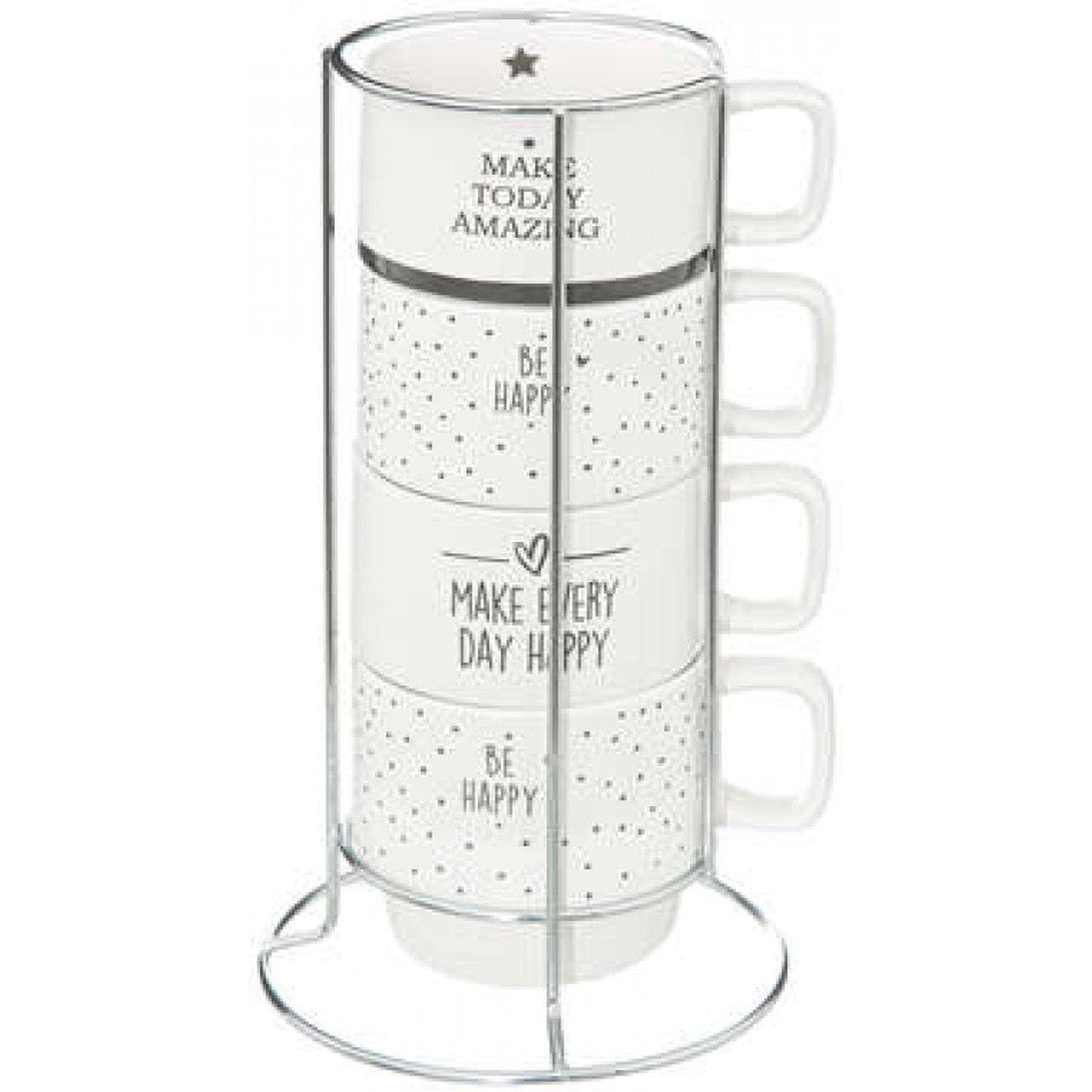 Mokken rek- mokken set- 4 mokken- tekst- wit/zwart- ontbijt set