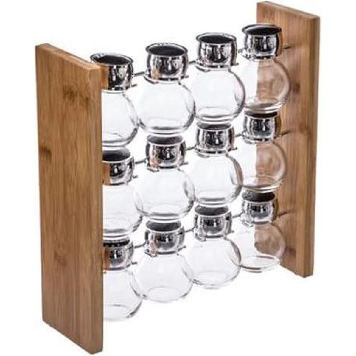 Houdt al je kruiden samen in 1 groot rek zonder overzicht te verliezen met behulp van dit mooie rek om op te hangen. De 12 kruidenpotjes zorgen ervoor dat er een breed assortiment aan kruiden in de houders kunnen zitten. Ook kunnen de potjes draaien om ze zelfs te gebruiken zonder ze uit het rek te halen. Mocht je ze er toch uit willen halen, is dit uiteraard geen probleem: de potjes hangen los in het rek en zijn gemakkelijk erin en eruit te halen.