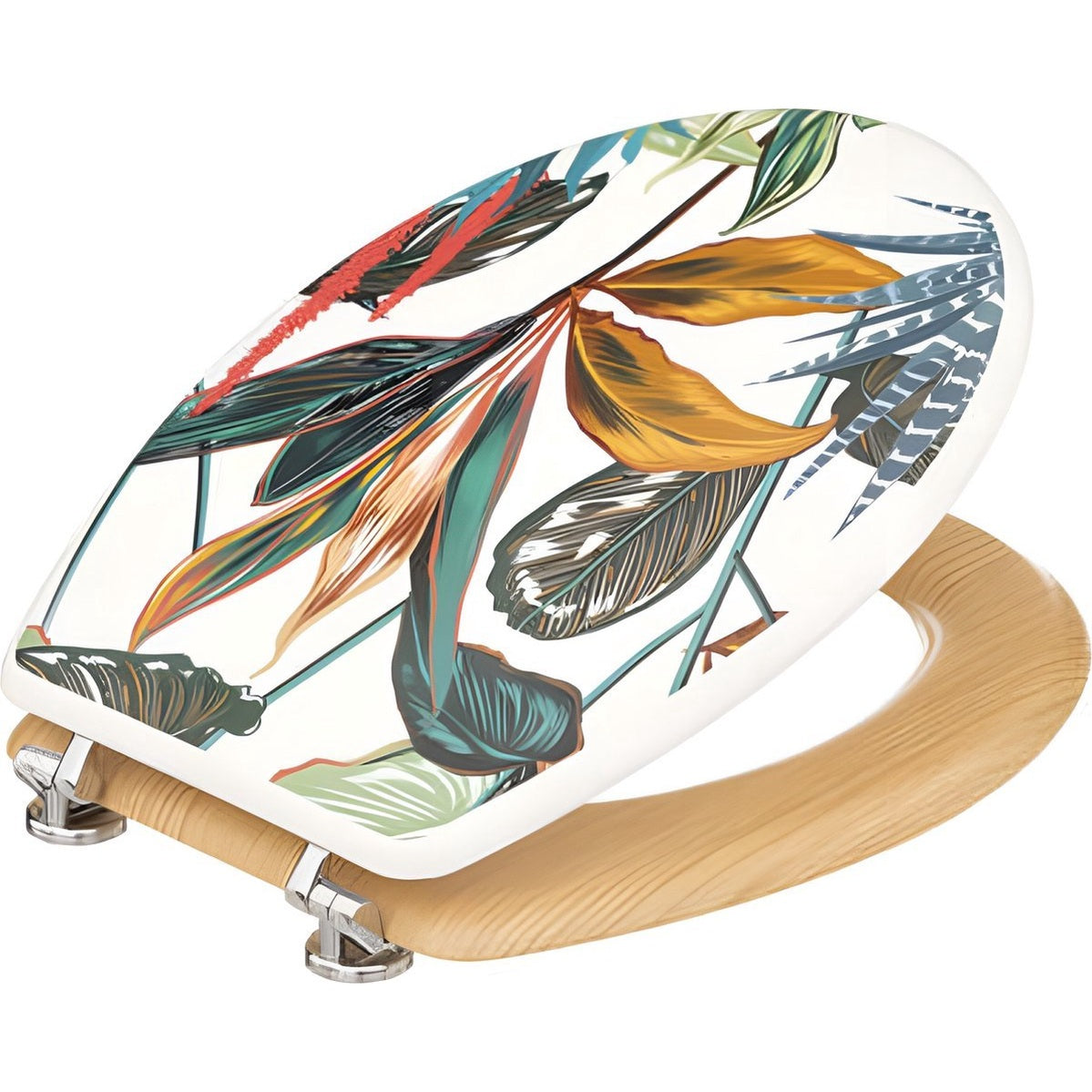 Set Toiletbril & Prullenbak – Tropische Bladeren Design – Bamboe Pedaalemmer 3L + MDF Toiletdeksel – Badkameraccessoires