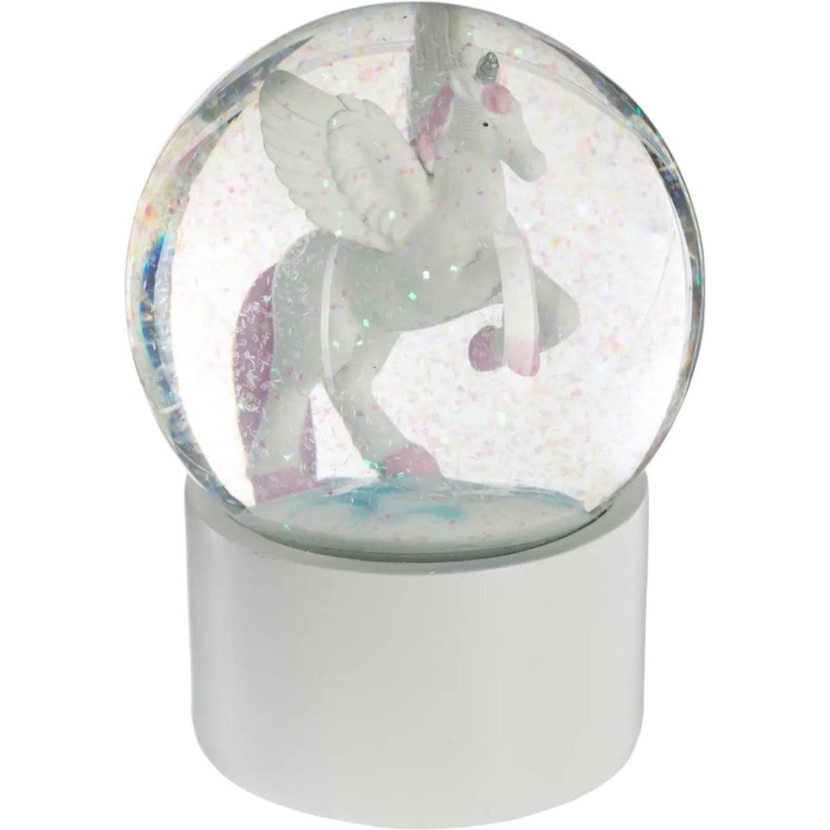 Na het schudden van deze sneeuwbol komt een sneeuw van glitters vrij. Leuk als decoratie op een kinderkamer of als toevoeging aan een kinderfeestje. Geloof jij in magie?