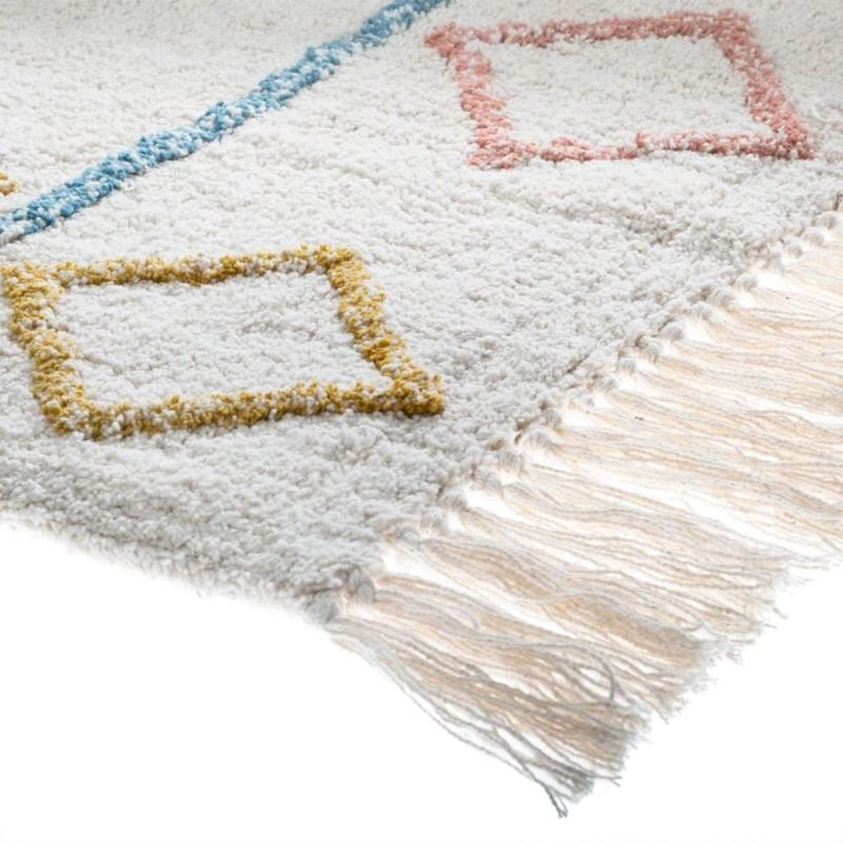 Dit prachtige vloerkleed heeft een speels patroon. Dit kleed is een aanvulling voor in je huis. De kleuren van het kleed zijn onder andere rood , geel , blauw en groen. Door de verschillende kleuren is het kleed een speelse toevoeging in ieder interieur. Het vloerkleed is gemaakt van 100% Katoen. Een zachte vezel die gemakkelijk schoon te houden is.